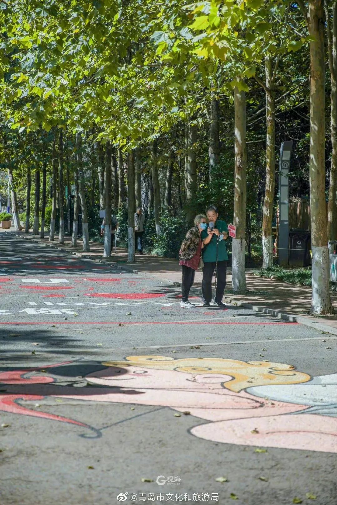 在太平角公園裡有一條「丘比特之路」,48米長小路上的每一個地繪,都表達了對心愛之人相伴一生的約定,非常適合戀人散步。