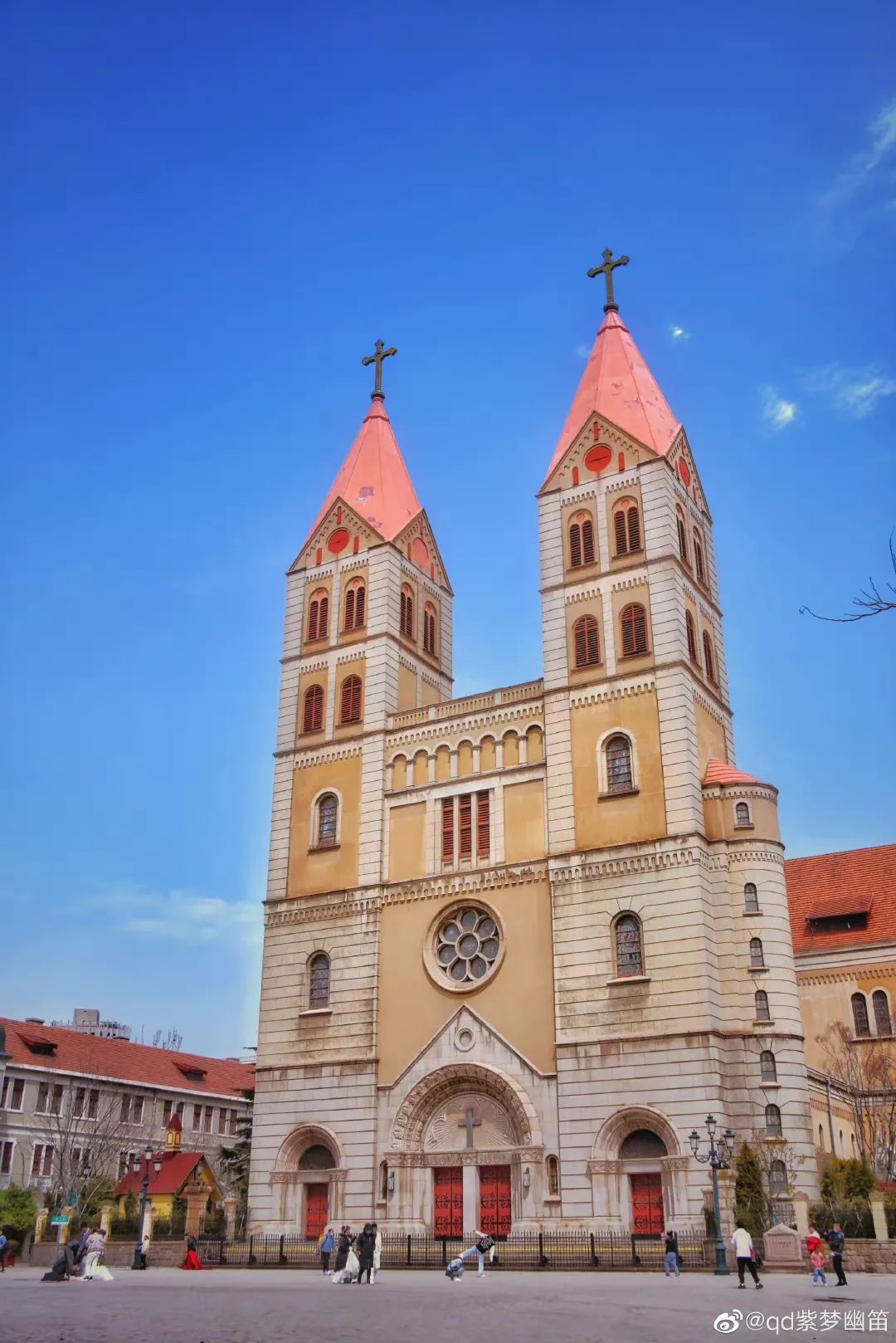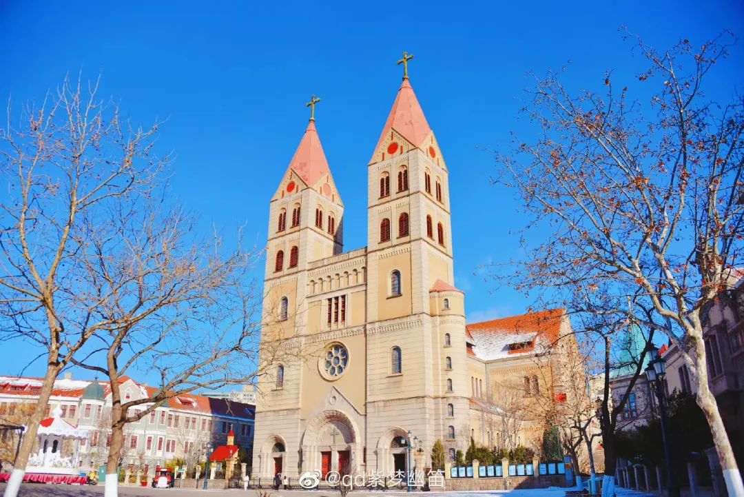 聖彌厄爾大教堂是很多文藝情侶必去的地方,獨具歐洲風情的哥特式建築風格,聖潔精美的雕塑,是青島最火爆的婚拍取景地之一。