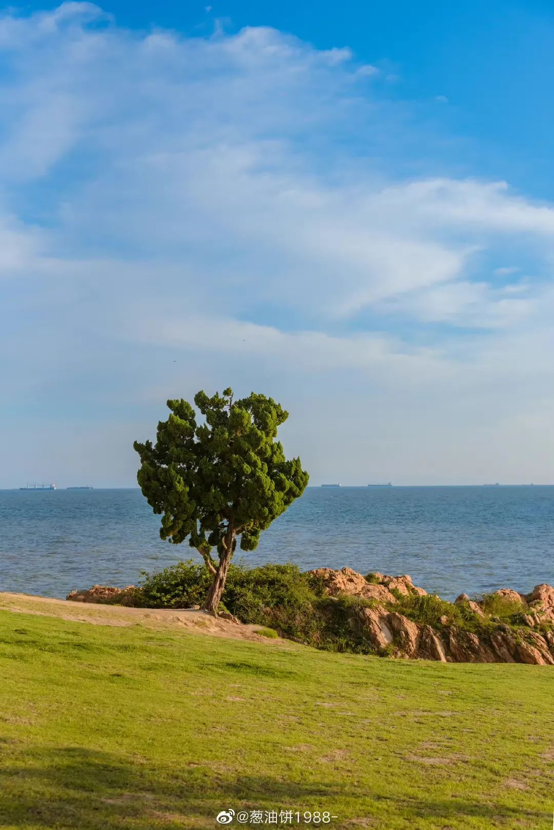 小麥島公園裡有許多處漂亮的大草坪,既可背靠大片萋萋芳草,又可面朝大海看潮起日落,景色開闊優美,待一會便覺得心曠神怡。