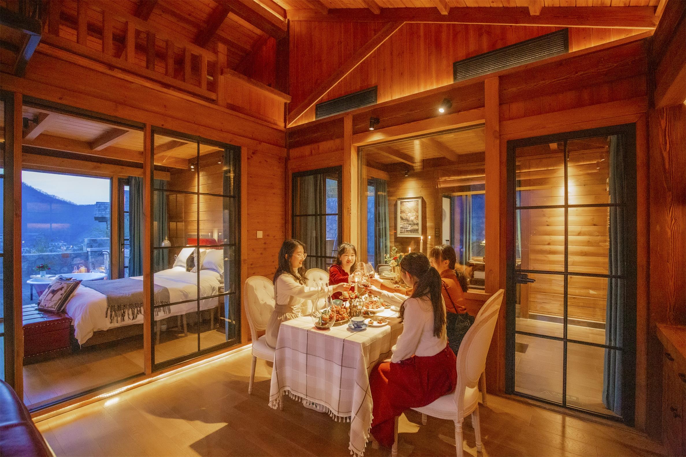 群山環繞中,一座座木屋民宿在山林中若隱若現,仿佛從童話中走了出來,讓人安靜又舒適