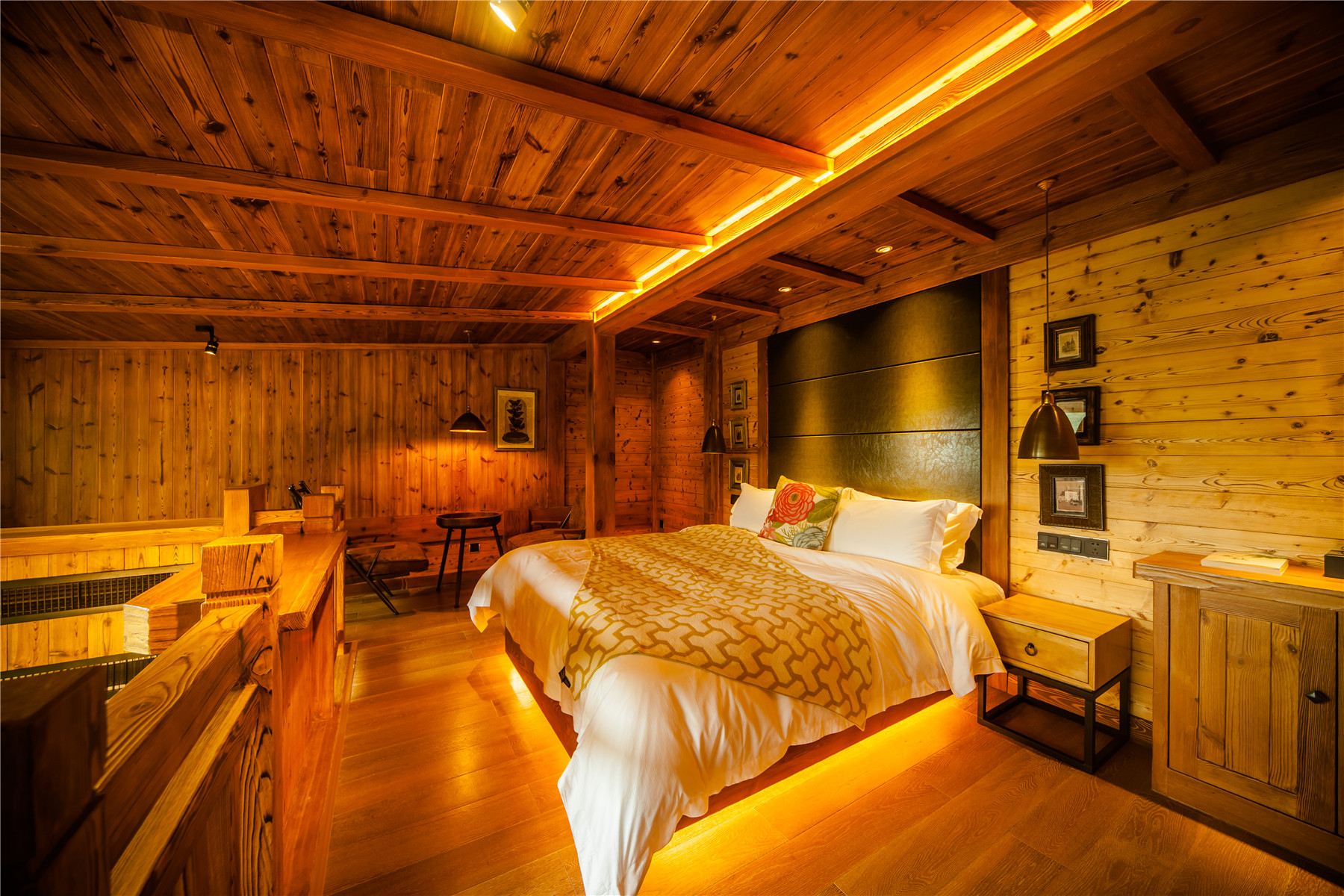 住進瀑下的不二木居,推窗聽瀑、觀山,轉身圍爐小憩的溫馨,loft的房型,讓夢鄉脫離地球的引力,仿佛翱翔在太空中