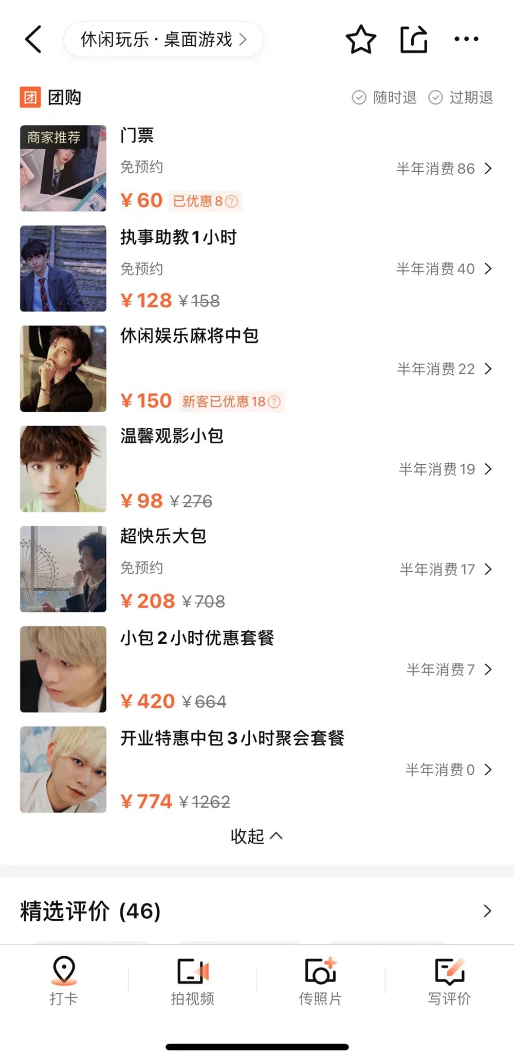 在某消費點評App上,記者點擊進入一家「執事桌遊吧」的頁面,團購資訊顯示「執事助教1小時」的價格為128元。店家介紹,在店內完成首次消費後,店裡的「男執事」就可以付費帶離門店,外出價格是店內消費的1.5倍。「外出能去劇本殺、密室、遊樂園,反正是有幾個選項。不能喝酒,晚上加班也是額外收費的,21:30以後再加1.5倍。外出還有一個要求是從店裡帶走,要送回店裡,等於結帳是按照出去和回來的時間算。」桌遊店老板說。
