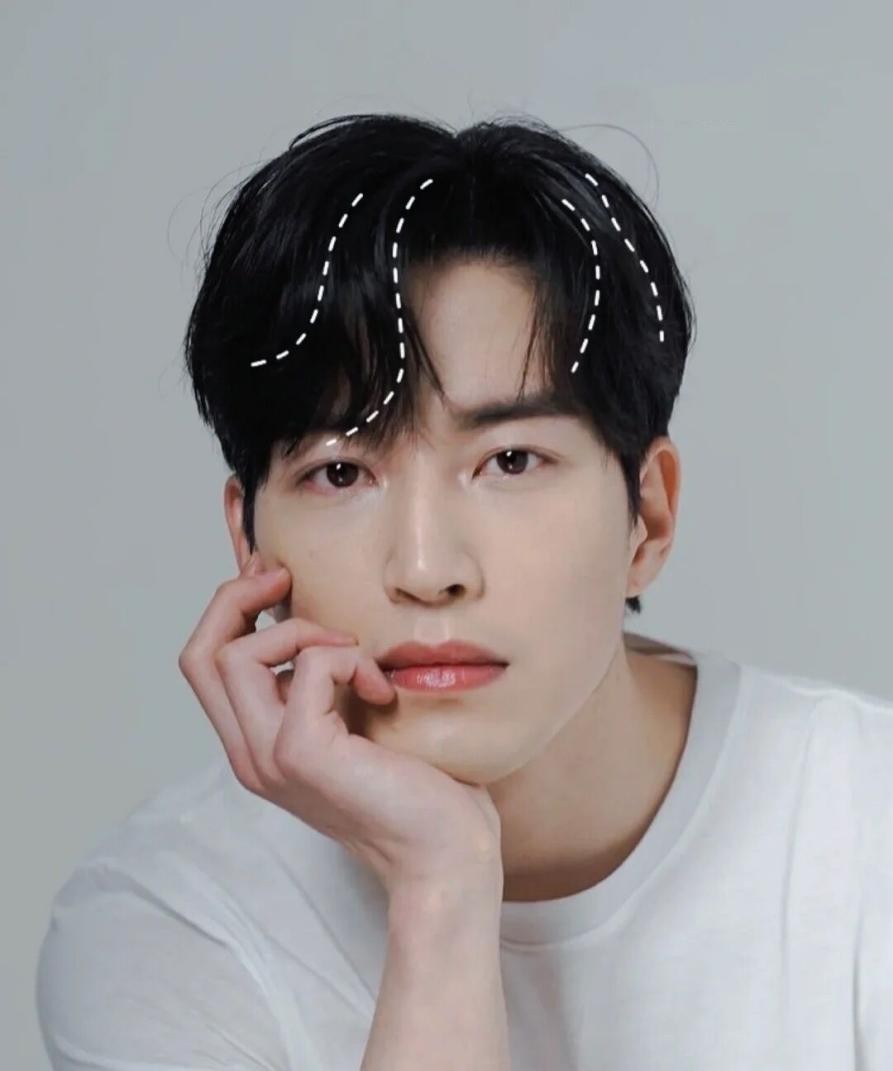 圓臉、三角形臉的男生,需要在頭頂做一些造型,將面部的線條輪廓拉長。紋理短髮先將兩側鬢角處的頭髮剪短,用剃刀將鬢角處的弧線刮出來。因為頭髮具有一定的韌性,若是不進行燙髮是沒有辦法打造出高顱頂的效果;所以將頭頂的頭髮削薄之後進行紋理燙髮,增加高低不一的立體感,可以再染一個深棕發色,整體就有韓系男主的溫柔紳士范了。