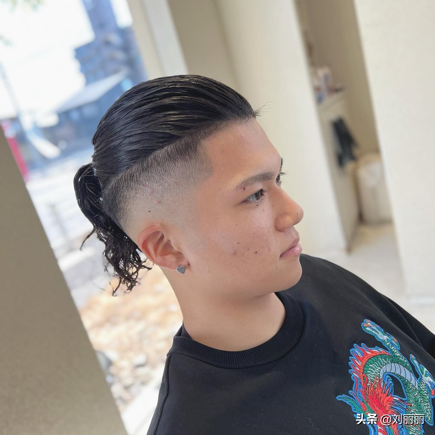 首先給大家呈現的是一款露額髮型,把兩側推光光,中間保留一長條頭髮向後梳,既有個性又有特色,還有增加身高的作用。