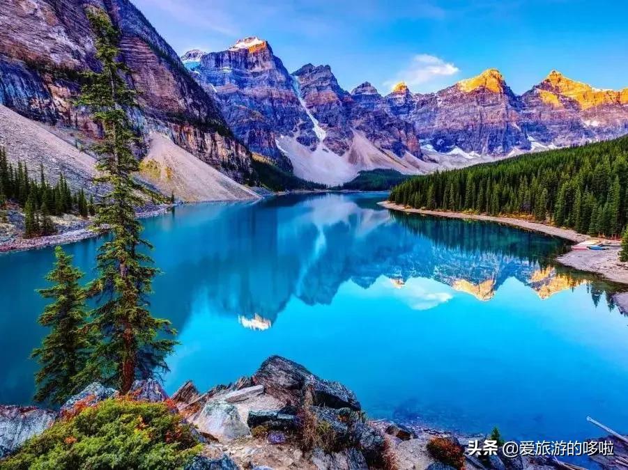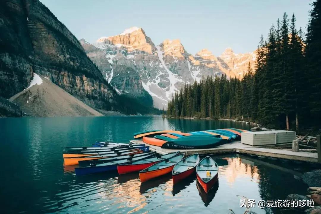 碧藍的湖面,紅艷的船隻,配著風姿卓約的維多利亞山和四周的綠樹,是北美最受攝影師青睞的攝影地點。