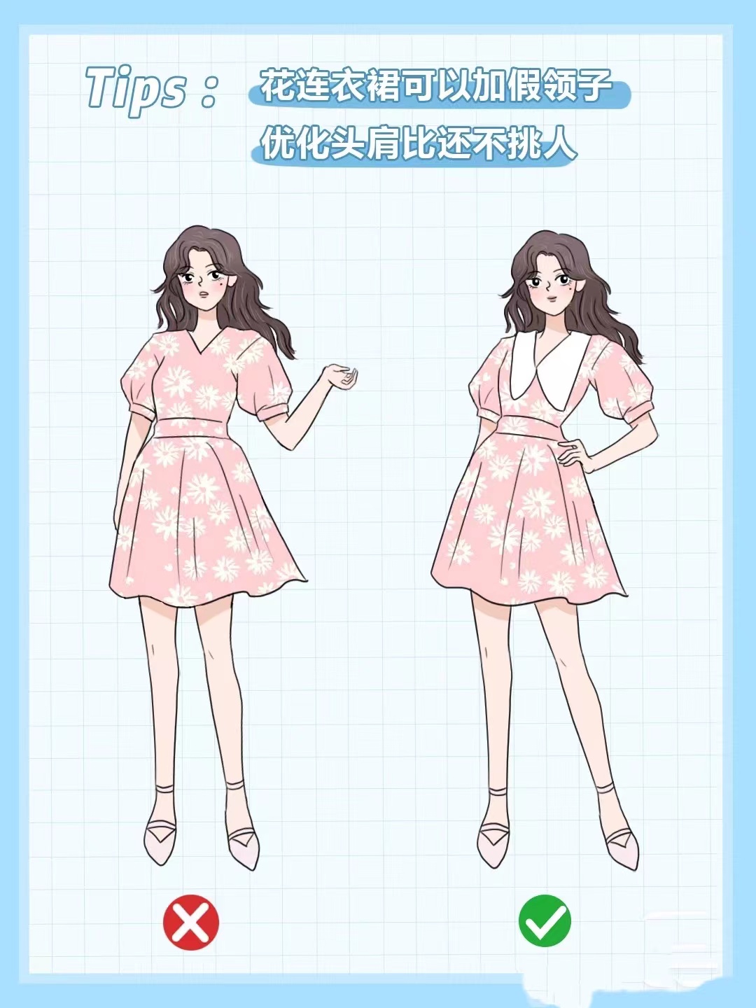 印花連衣裙如果直接單穿的話,很容易給人一種比較花哨的感覺。這時候我們可以給印花風的連衣裙加一個娃娃領或者海軍領的設計,不僅整體風格更加清新,也特別的時髦乾淨。