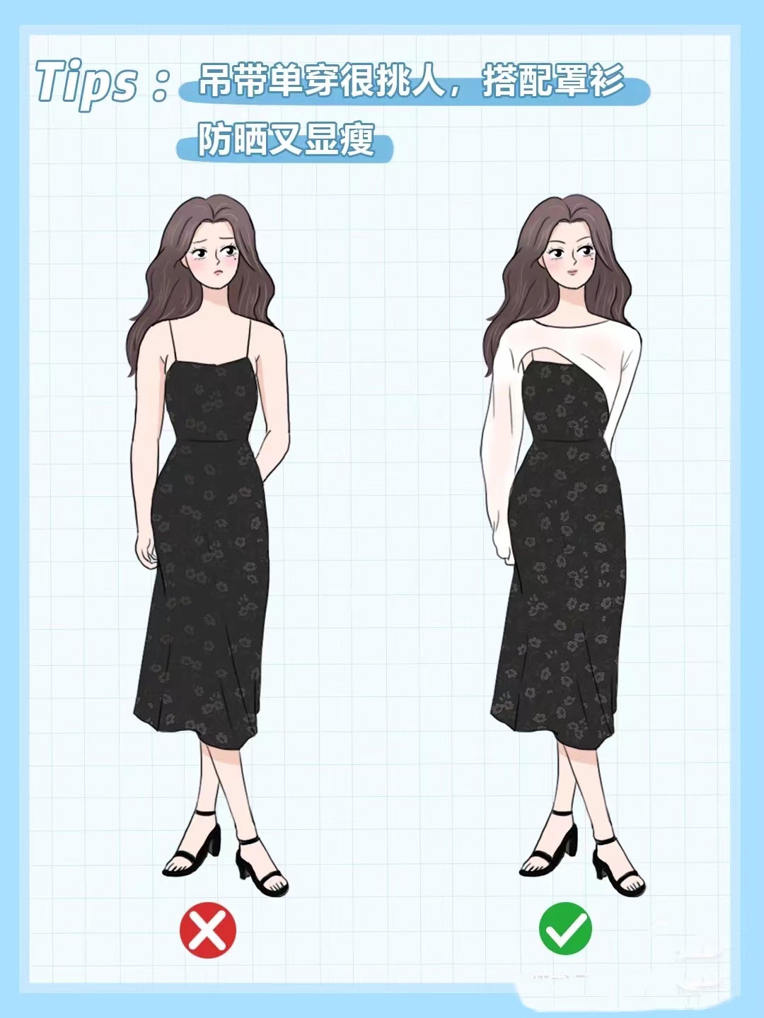 吊帶裙特別的洋氣性格,但直接單穿的話很容易暴露身材的缺陷。這時候我們建議大家選擇搭配罩衫穿著,不僅優化肩頸部的線條,同時也打造出更加時髦洋氣的精緻感。特別的顯瘦又時髦,日常穿搭中也是比較值得借鏡的。