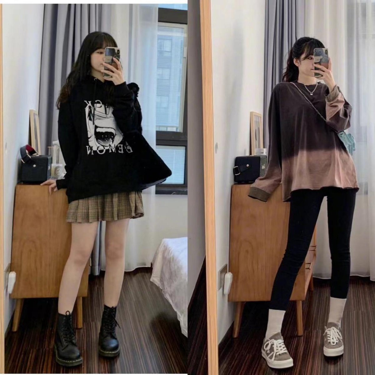 一件直筒的格紋小短裙,本身就很凸顯雙腿的纖長,高腰的設計又穿出了女生的小蠻腰,身材的玲瓏曲線格外性感,上衣搭配一件簡約溫柔的薄款衛衣,也是超甜的。