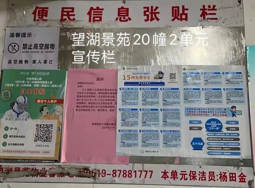 ▲受害人所在小區單元門防詐騙宣傳張貼處