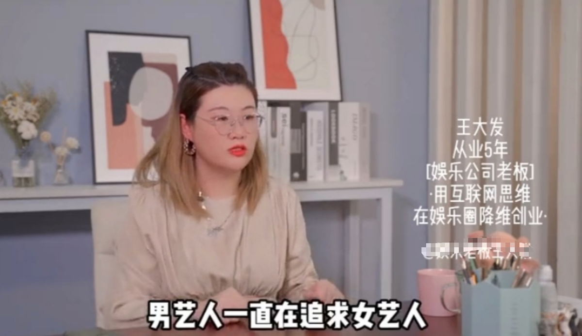 這位娛樂公司的老板看上去比較年輕,她自稱已經從業5年,手下有著很多藝人。她的裝扮也比較時髦,穿著卡其色連衣裙,戴著眼鏡很有知性的氣質,說到娛樂圈內幕的時候神色超級激動,對某些藝人的不滿溢於言表。