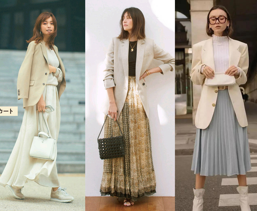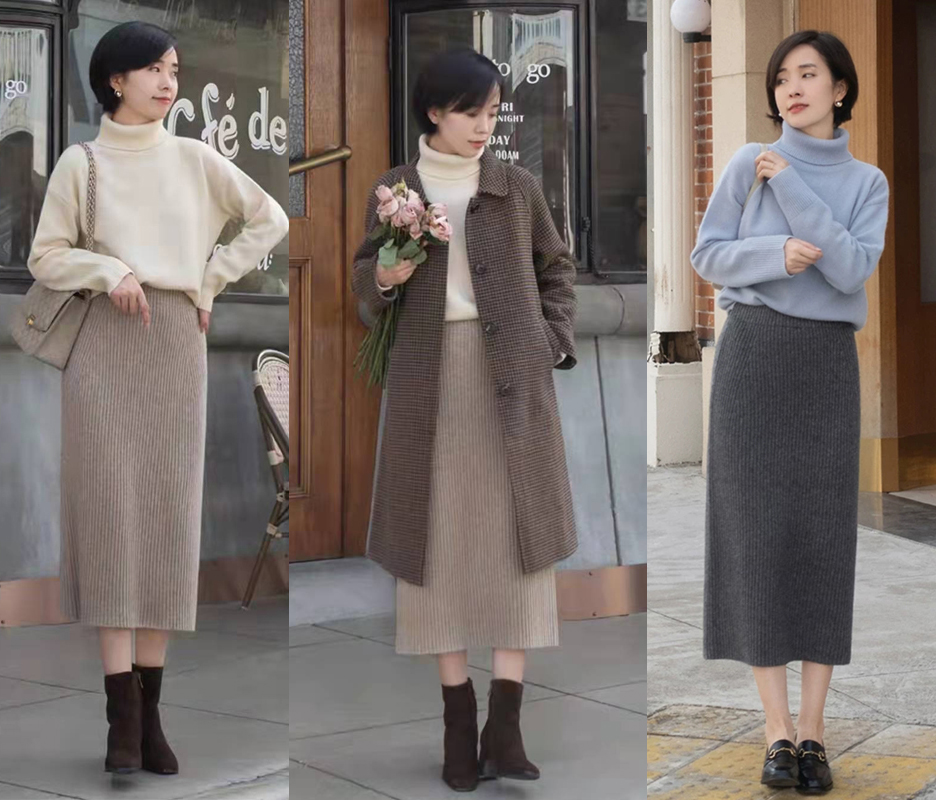 搭配半身裙,會呈現出優雅知性氣質,讓你的穿搭更加分可以選擇長款的半身裙,這樣能夠更有效地提升氣質,讓穿搭看起來更大氣。