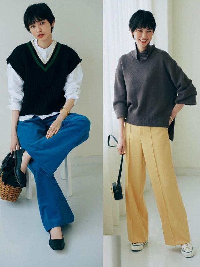 在挑選褲子的時候,大家也可以大膽地嘗試各種洋氣的色彩。這種時髦的綠色或藍色闊腿褲,一下就能夠彰顯出時尚感。
