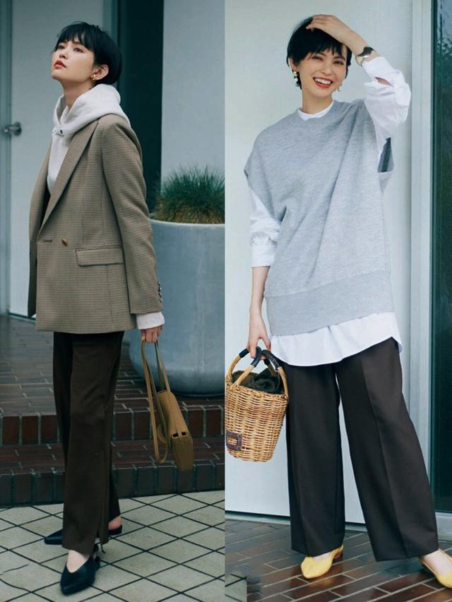 在這個季節,大家也喜歡用各種簡約的褲裝造型,其實在今年的時尚圈中並不流行緊身褲。如果你的腿型不好看,或者是腿粗,選擇直筒褲或者是錐形褲會更時髦,能夠很好地幫助你修飾雙腿,顯瘦時髦。