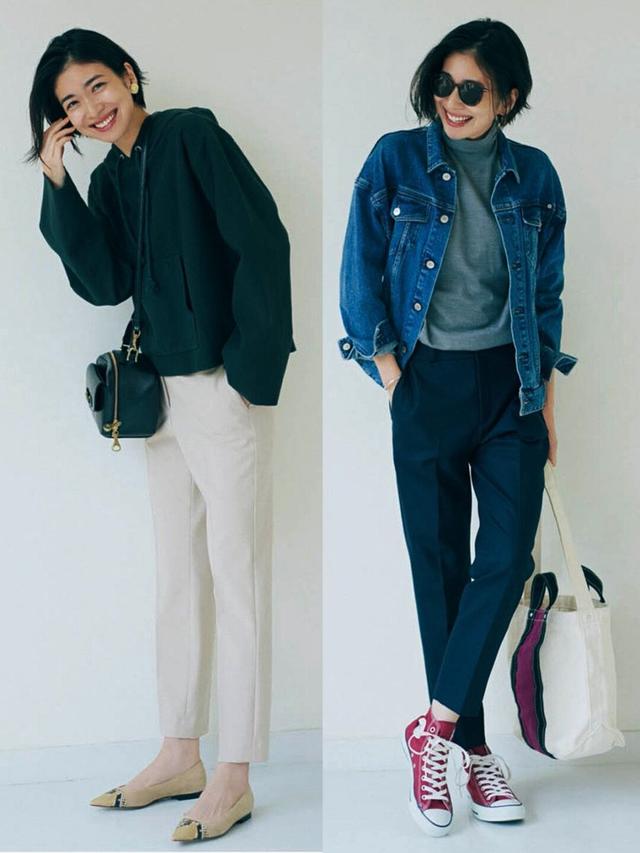 搭配九分褲,修飾腳踝,更能顯瘦顯高,而且結合了一些時髦的帆布鞋和單鞋凹造型,也會更顯時髦。
