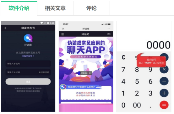 詳情:好運吧聊天軟體是一款私密性特別強的安全聊天平臺。好運吧app非常有意思的地方在於她們開發計算器聊天軟體,表面偽裝成其他的軟體例如計算器,新聞軟體,百科軟體,小遊戲等等,但是特定入口輸入密鑰卻能和重要的人聊天!