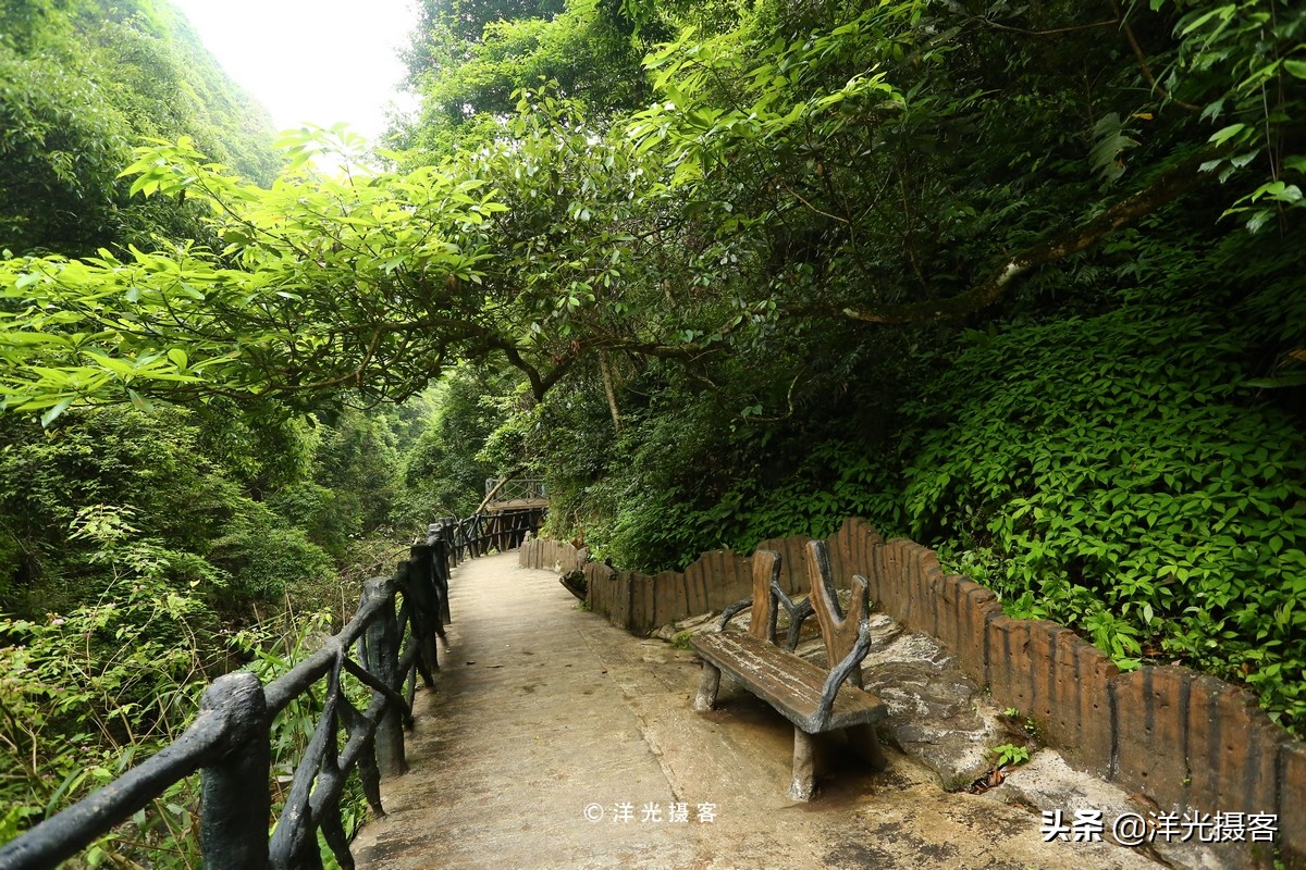 峽谷棧道沿著峽谷依山而建,行走在棧道上,不僅可以欣賞峽谷的幽深靜謐,還能俯瞰谷底清澈的流水,景區的棧道沿著峽谷慢慢向前延伸,人時而在濃密的樹蔭下穿行,撥開枝葉,跨過藤蔓;時而在光滑的峭壁邊劃過,時而狹窄,時而開闊,卻總有一種令人豁然開朗,天地漸寬的感覺。