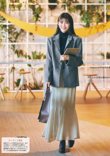 而且很多日系博主都非常注重顯瘦效果,在嘗試毛衣時,你可以參考下面這個細節。用v領的設計來拉伸你的上半身,視覺上的顯瘦效果絕佳,再結合白色t恤混搭起來,用色彩對比來提升時尚感。