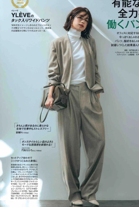 而且她們的穿衣方式大多數都不會太花哨,整個造型用的色彩也不會超過三種,另外,她們會用同色系的搭配方式來提升時尚感。就像下面這種套裝的穿搭,一定能夠保證搭配的正確率,並且也能最大程度修飾身材。