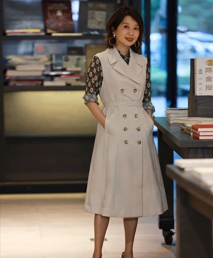 這款風衣馬甲也是能帶來對氣質的提升作用的單品,它的款式會更加輕盈一些,長款單品又可以遮住大部分的身材瑕疵,腰帶一收,更加顯瘦。