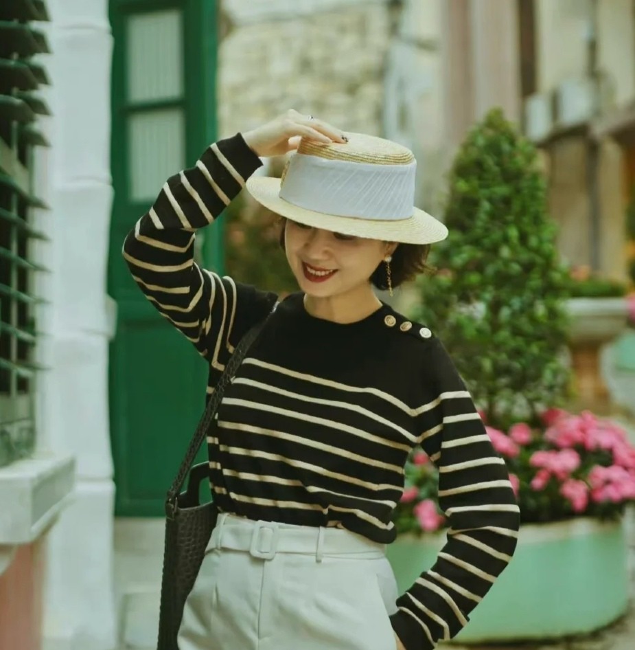 條紋衫屬於年輕女孩和年長一些的女性都很喜愛的服裝,尤其是它們的顏色使用不沉重也不會太單調時,更是能讓著裝在保持大氣美的同時,又不會顯得花團錦簇、過分混亂。