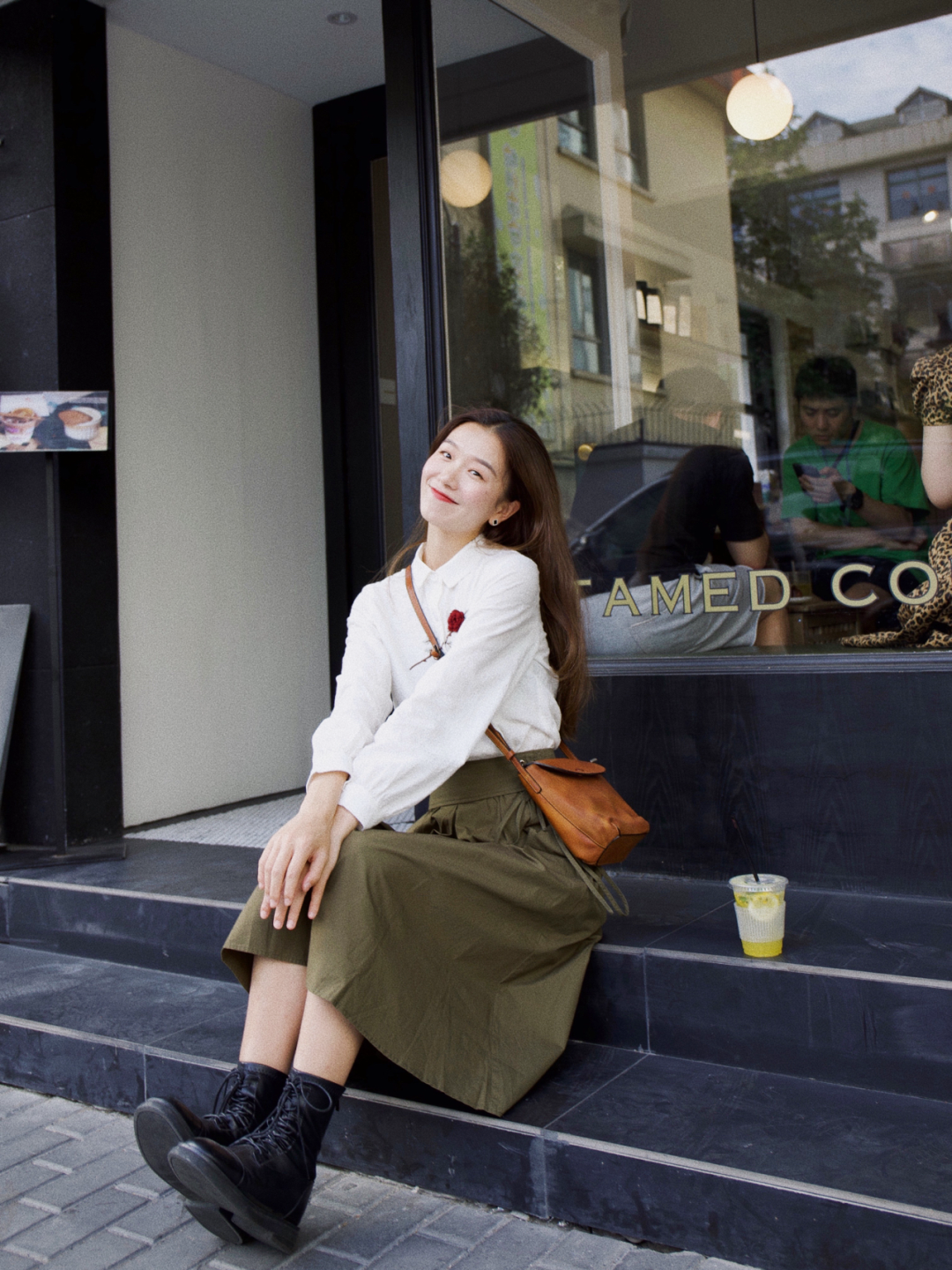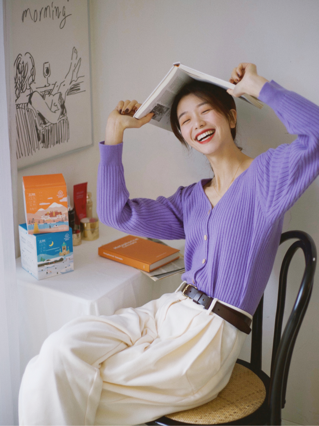 而是選擇更不挑膚色、更細節的顏色搭配,塑造出適合自己的文藝架式。