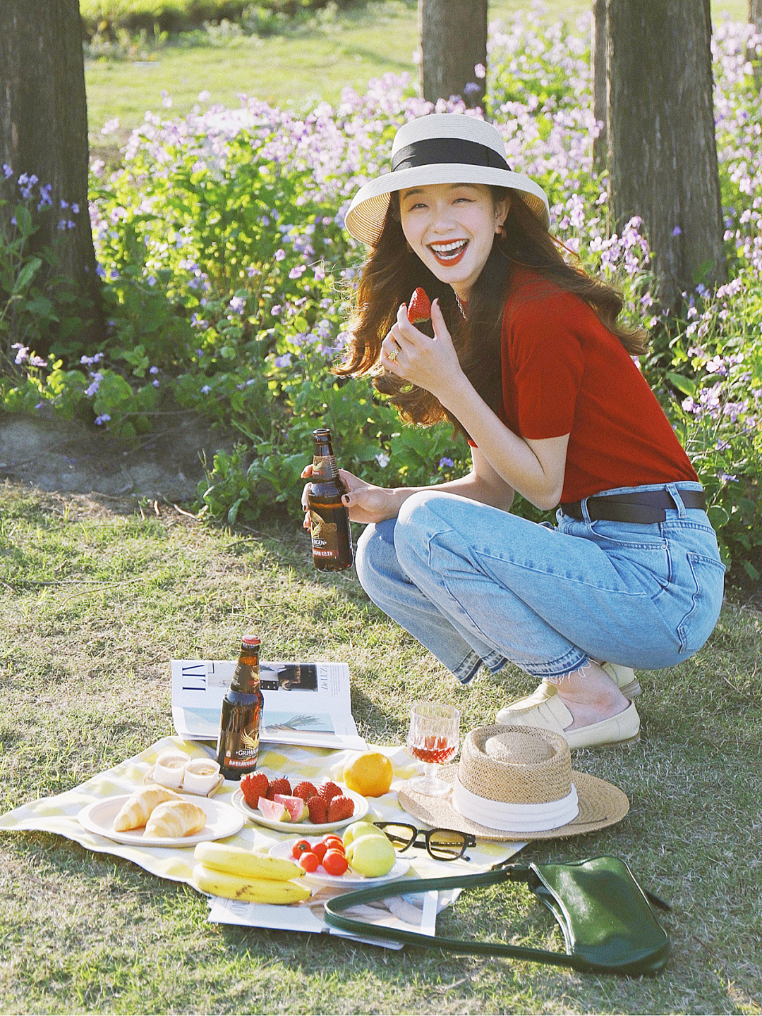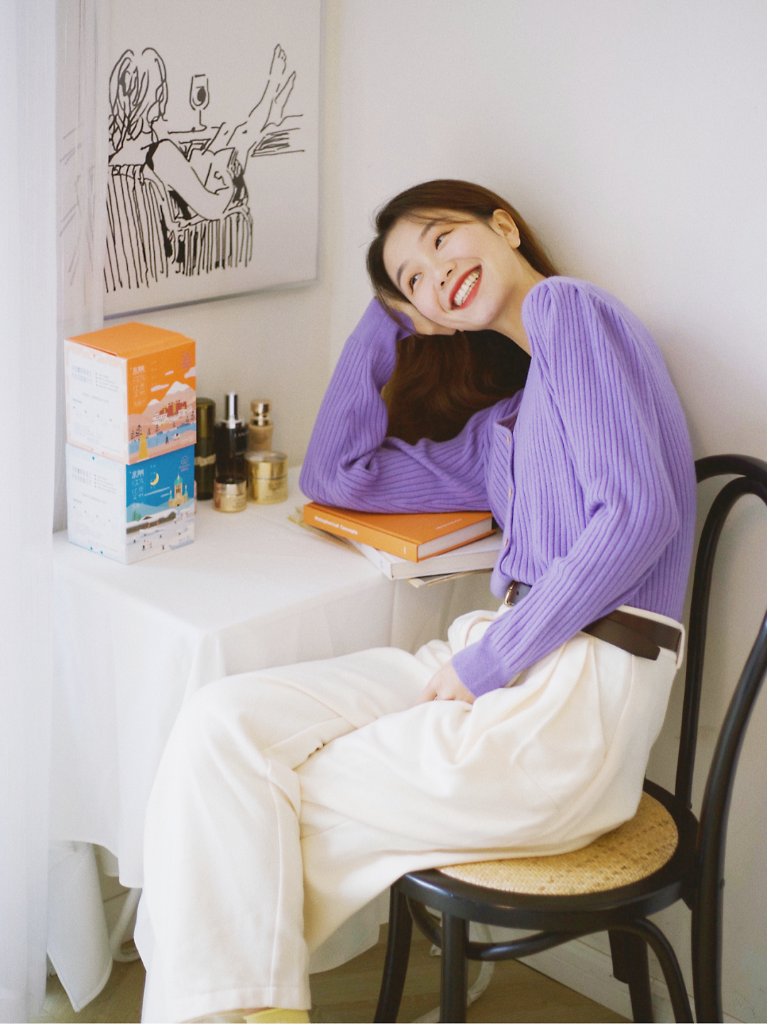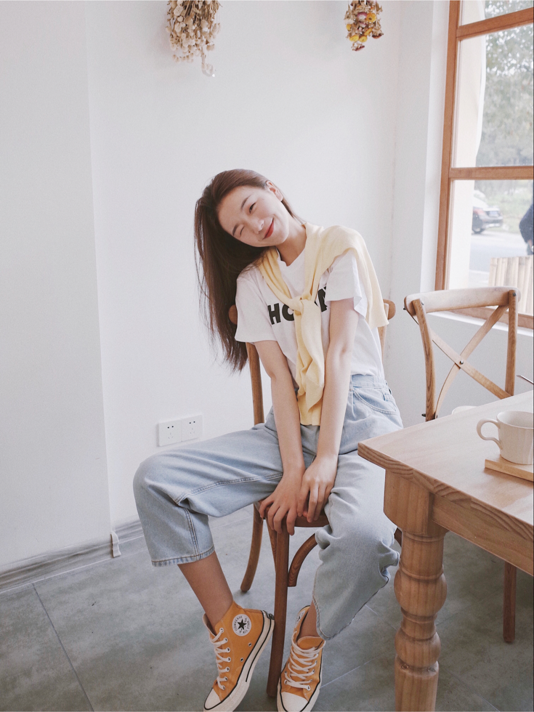 即使是普通的T恤、開衫,也會換成更吸睛的彩色,穿出專屬於她自己的feel~