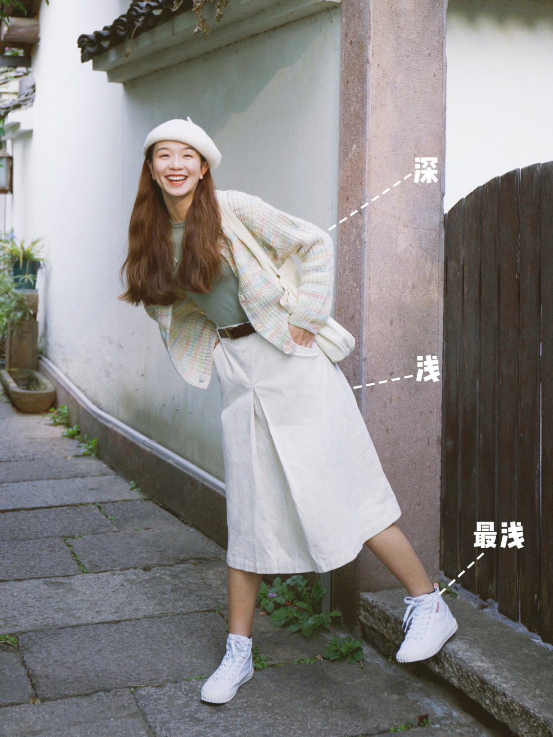 沒有上下撞色給人的視覺割裂感,自然顯高顯修長,小個子女生也可以輕鬆駕馭。