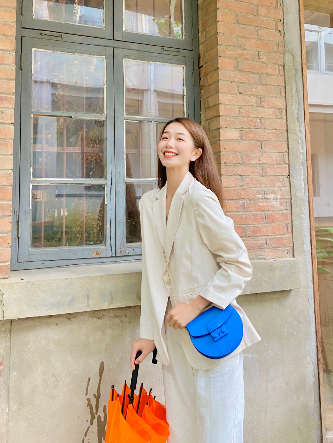 覺得穿搭太過單調時,也可以在配飾或者細節上下手,來點亮色點綴。