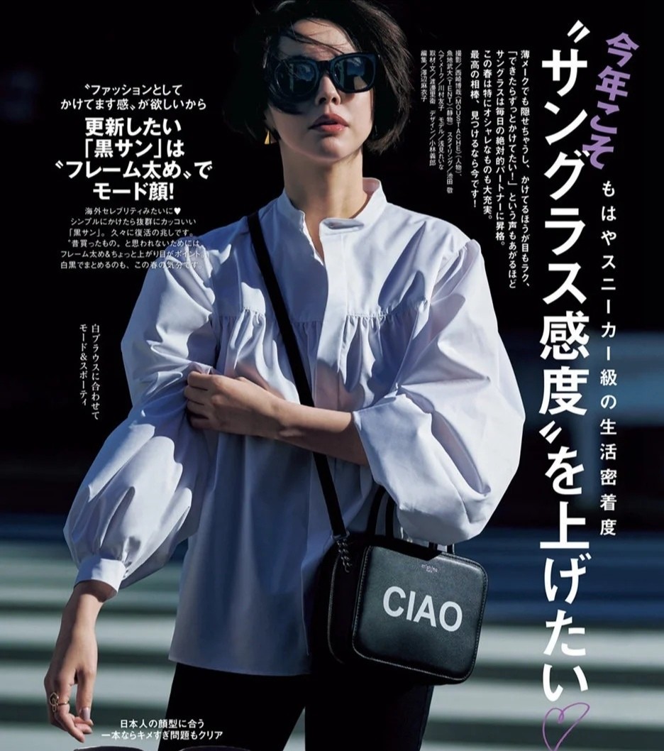 像這件袖口寬大的襯衫單品,它是很純粹的設計,袖管可以呈現出蓬松感,極大地減輕了它原本可能攜帶的嚴肅感。當襯衫的表面因為顏色的選用特別單調而展現出樸素感時,可以背上一款包包,進行填補。