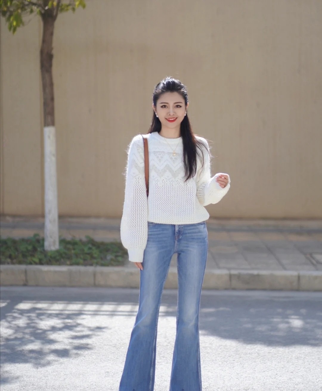 身高並不是特別出眾的女性,肯定希望借助一些單品美化曲線,就能採用短款上衣和牛仔褲的配合。質感良好的淺藍色針織上衣,結合顏色清爽的褲裝,高級又簡約。