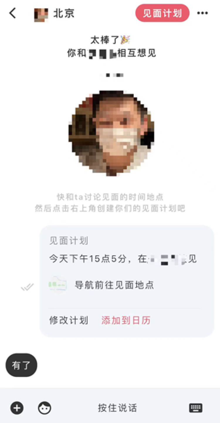 與與業務負責人介紹:「據我們大量的用戶調研數據,很多’社恐患者’找工作面試要比找對象輕鬆得多,因為前者是一個有明確目的性的行為。所以,我們希望社恐用戶像面試一樣,提出見面要求的人可以像招聘網站一樣,通過與與發送邀請,在邀請裡設置見面時間、地點。對社恐患者來說,如果一個人能默默配合自己做完這一切,那麼說明雙方的契合度已經很高,見面後的氣氛也會輕鬆很多。」