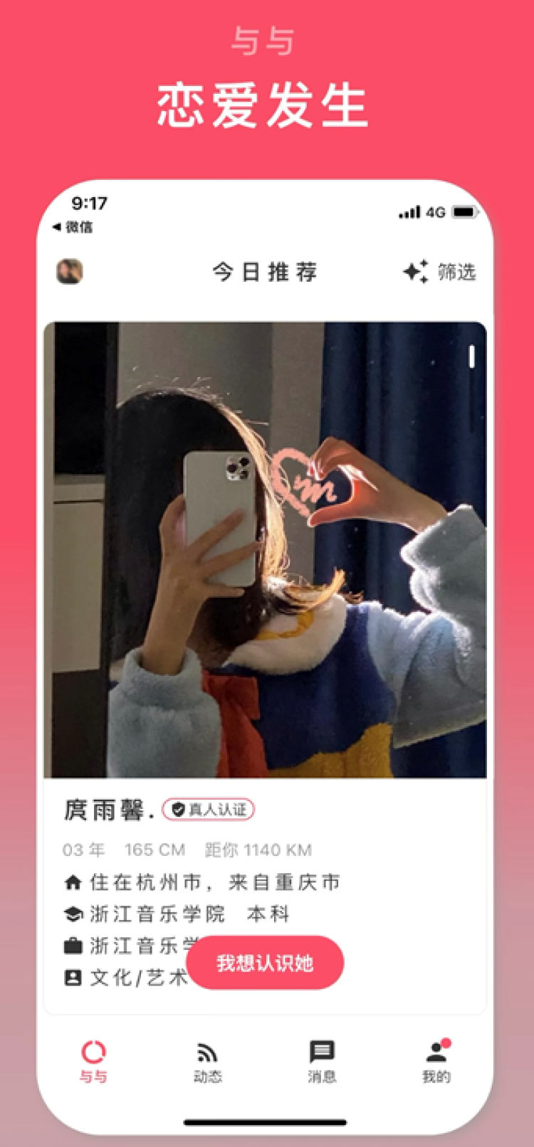 當代單身青年或多或少都面臨找對象難的問題。現實生活中圈子太小,網路社交又魚龍混雜,很難精準找到自己心儀的目標。而越是高學歷、高素質、高收入的「白(領)金(領)」人群,對另一半要求越高,相應的脫單難度也就越大。在這種情況下,一款主打高質量戀愛交友的社交產品「與與」正在走進更多年輕人的視線。