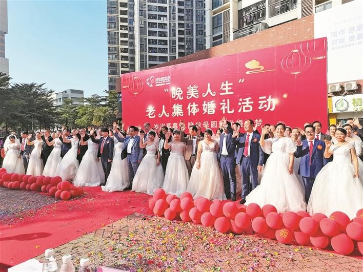 讀特客戶端·深圳新聞網2022年1月4日訊(深圳晚報記者 黃明鋼 通訊員 郭夏燕攝)1月2日下午,由龍華區福城街道黨工委主辦的民生微實事「晚美人生」老人集體婚禮活動在福安雅園成功舉辦,30對老人圓了婚禮夢。