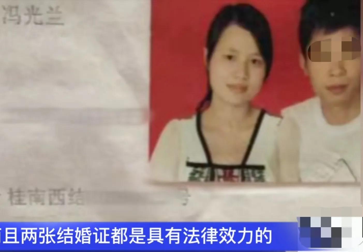 記者拿著馮光蘭在江西那邊登記的結婚證和在廣西的結婚證一對比,發現她的資訊都是對得上的,而且兩張結婚證都是具有法律效力的。