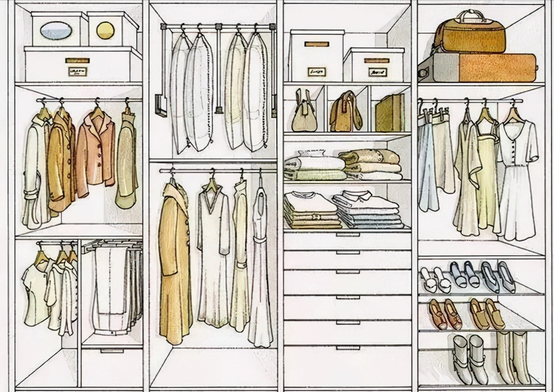 按照自己衣櫥空間大小,或職業,或穿搭習慣,將衣服分類分區展示。每天穿衣時,即取即用,穿什麼一目了然。