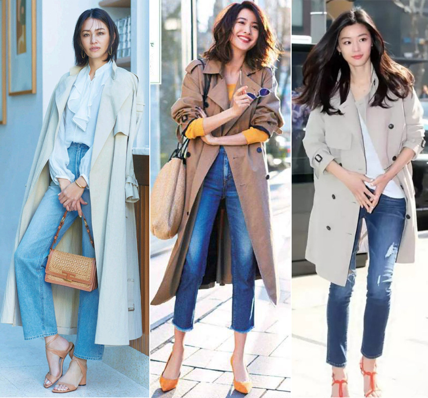 初春季節的搭配,是少不了風衣外套的,利用寬鬆的風衣外套,來搭配高跟鞋和牛仔褲,這種搭配方式對於很多女性來說,可以有效地提升品位,讓搭配的審美也有所提高。