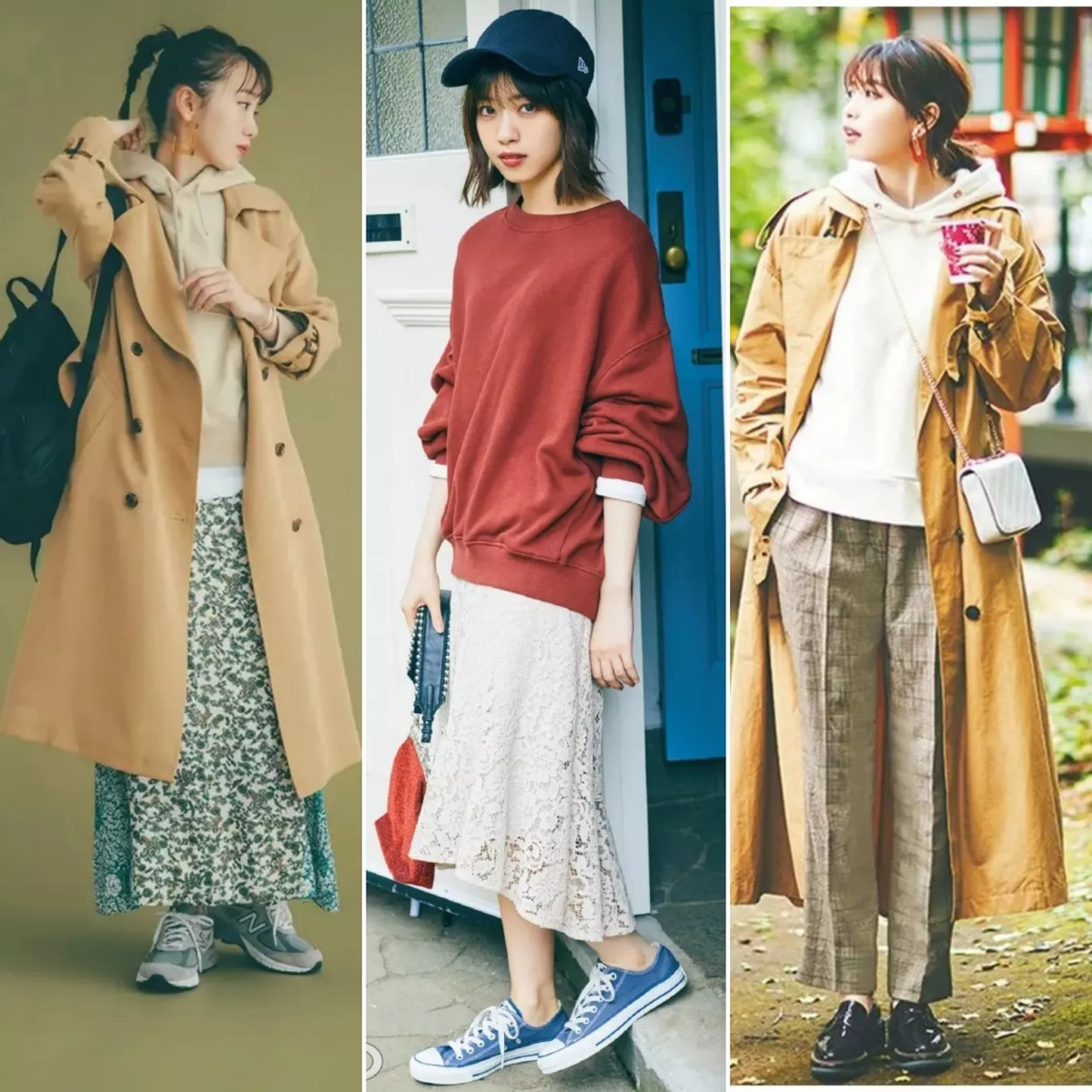 卡其色風衣+打底衫+直筒褲