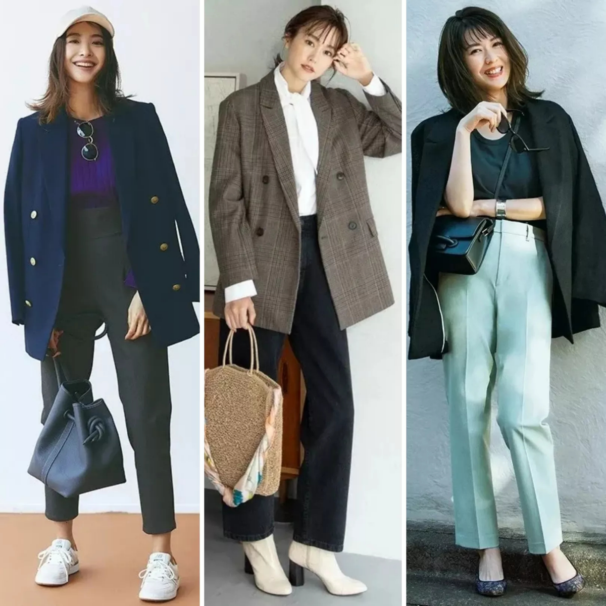 西裝外套+直筒褲+手提包