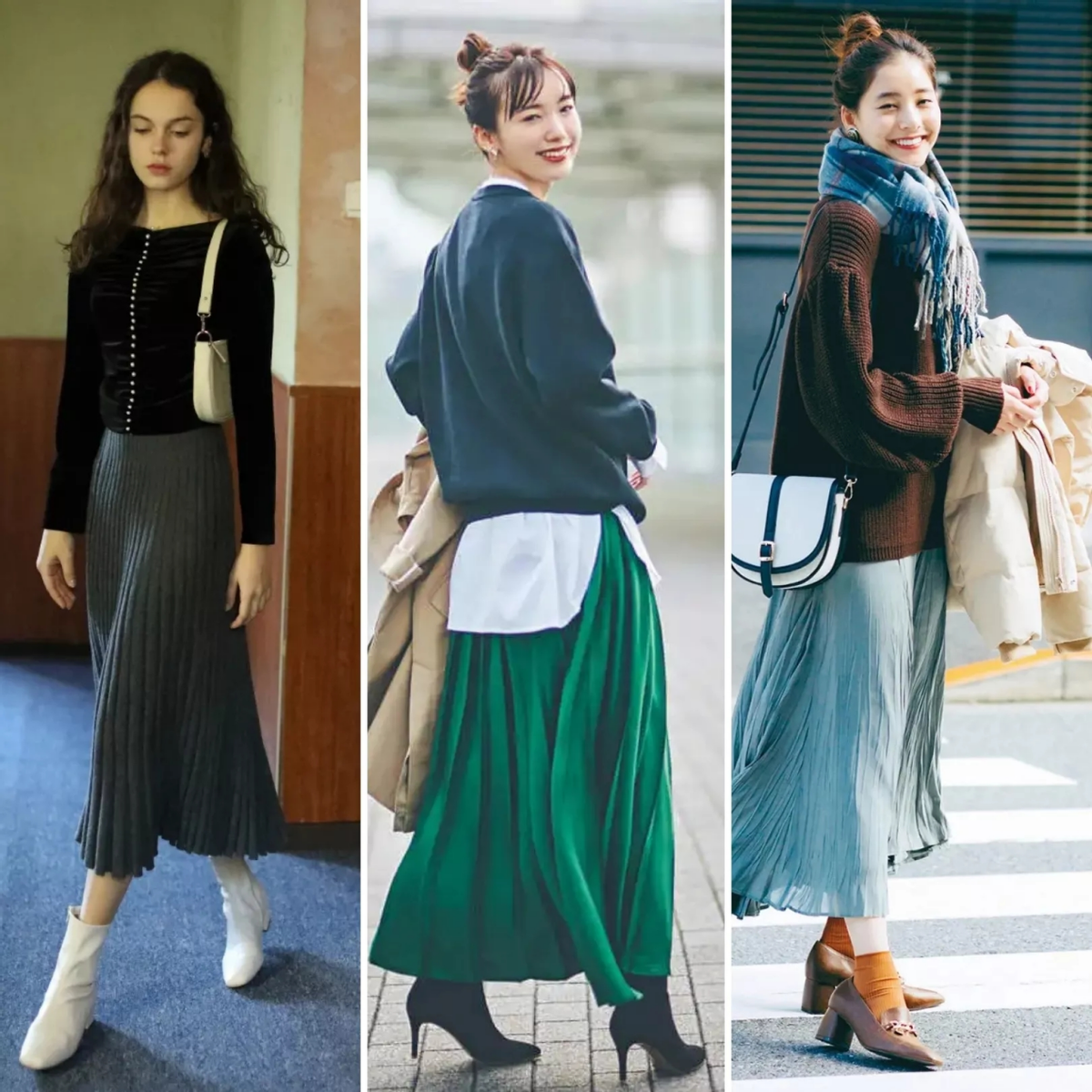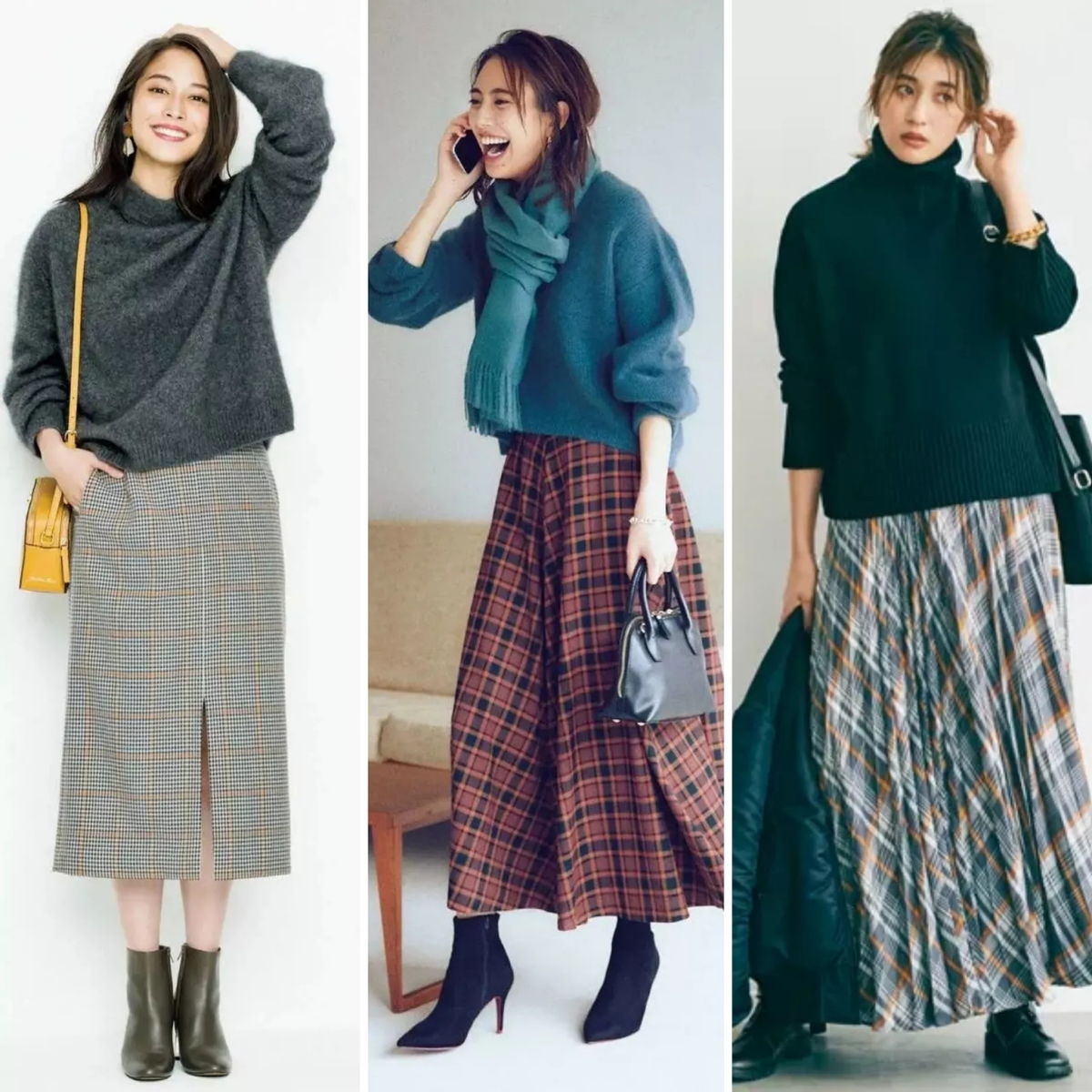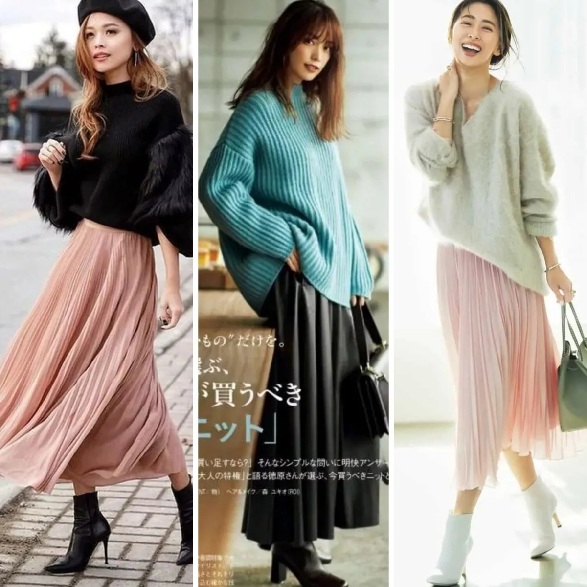 寬鬆毛衣+半身裙+靴子