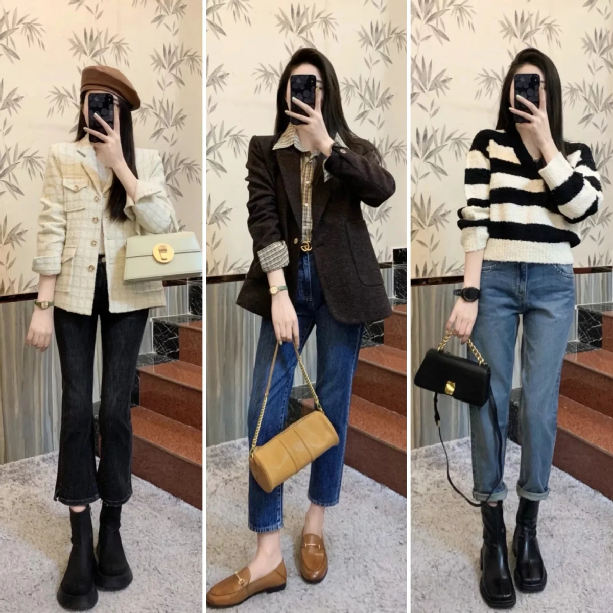 如果想要氣質變得更好,可以選擇小香風西裝外套,搭配黑色直筒褲和靴子,再選擇一款手提包,穿搭的華麗感十足,能夠讓你的氣質變得更突出。