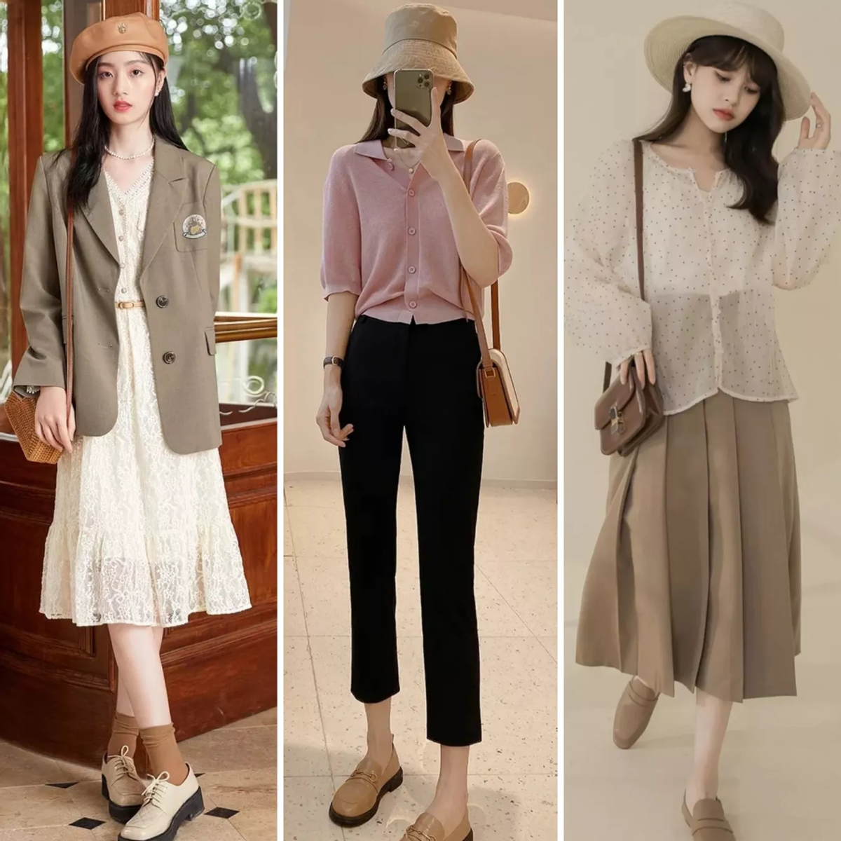 初春季節更適合穿裙子,可以嘗試西裝外套,搭配連衣裙和帽子,這種搭配方式,就算顏值不出眾,也能打造高顏值,因為帽子修飾臉型,還會讓你的穿搭看起來更有吸引力。建議選擇貝雷帽,和親感十足的連衣裙,從而打造高品位穿搭。