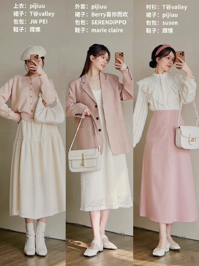 說到最具有少女感的顏色,那一定是溫柔又耐看的淺粉色,短針織衫、西服外套以及高腰半身裙這些都是春季再怎麼穿都不易過時的單品,當這些單品結合上淺粉色調微,又為穿搭帶來了濃鬱的清純感。
