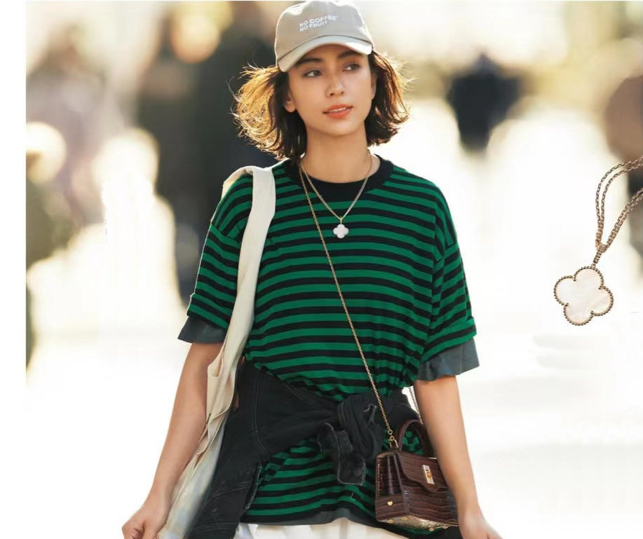 進行深色與淺色,或者帶有圖案的花色搭配時,根據色調或圖案的印花面積、飽和程度,先確定誰適合當主角,再順勢而為。