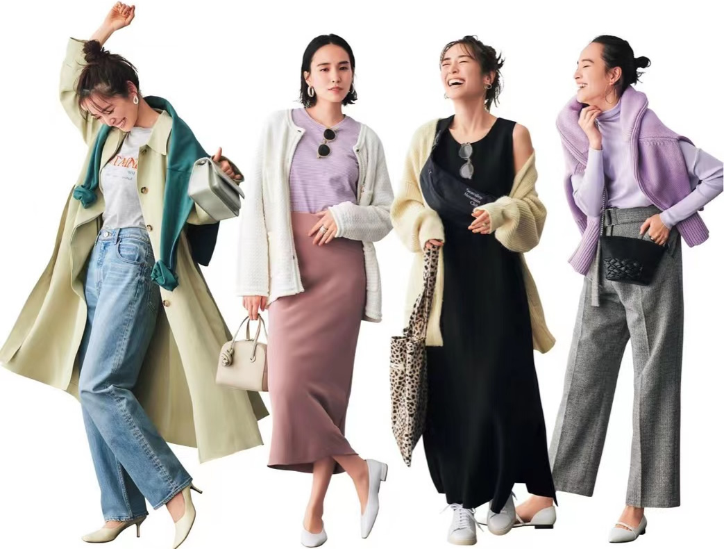 像上寬下緊、上短下長、外松內緊、上窄下寬…形成錯落有致的和諧組合,讓身材線條得以揚長避短。