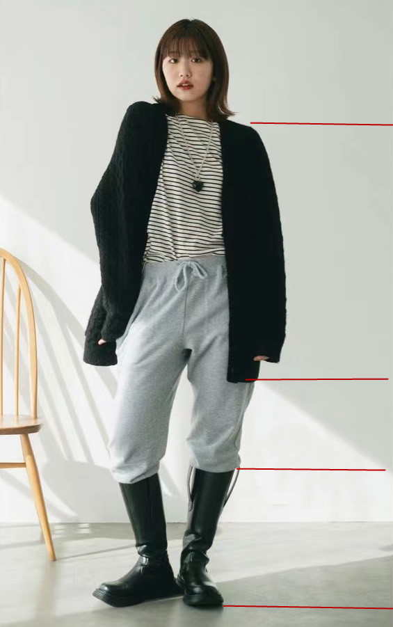 及膝馬靴的帥氣出場,如果早知道與如此休閒的褲子搭配,估計早就掩著臉逃了。先不說風格,單單長長短短所營造的縱向切割,就知道有多可怕了。