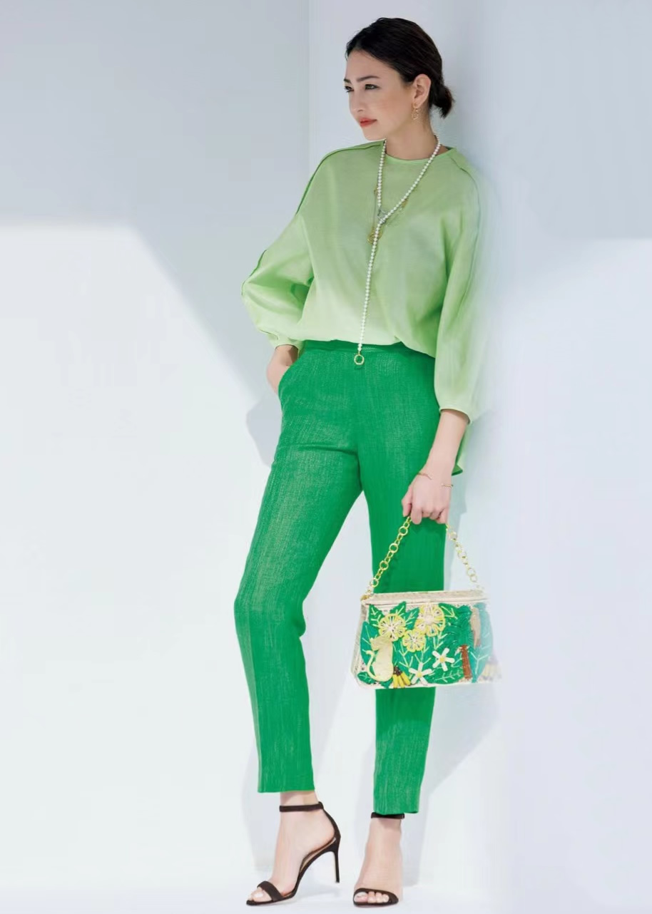 隸屬同一色調,卻有鮮明矛盾對比,完美!另外,鞋子、包包的同色附會,哪有破壞縱向比例的嫌疑?