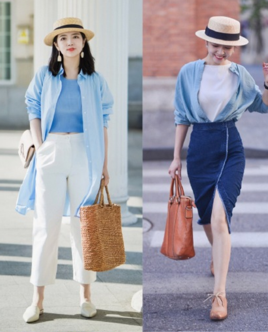 博主運用的色彩也都比較清爽,像下面這些疊穿搭配以藍色和白色為主,更能夠凸顯活力滿滿的感覺,看上去很簡單。