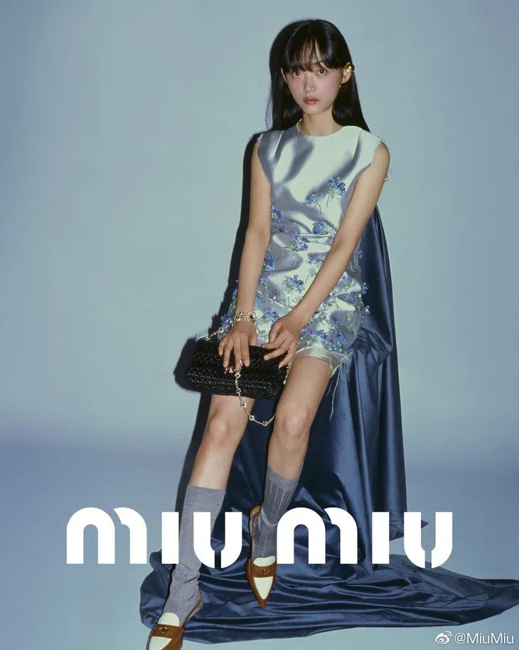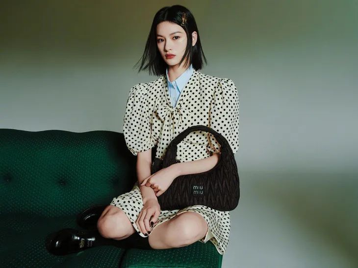 新年大片邀請品牌大使劉柏辛、邱天共同演繹假日季經典單品,印花圖案泡泡袖連衣裙正是Miu Miu最不挑人的少女裙裝。