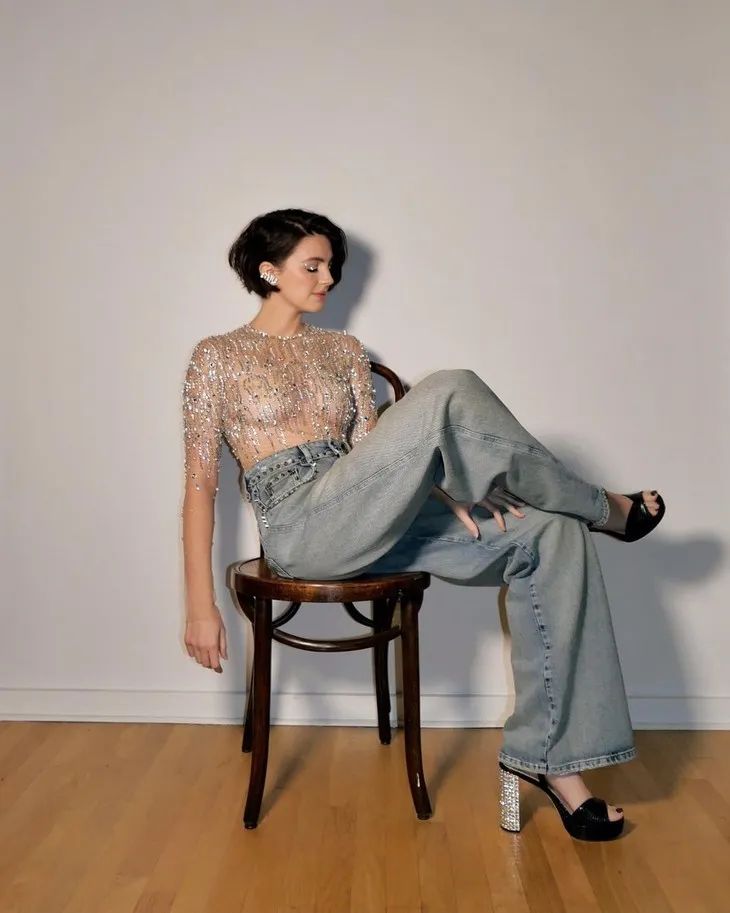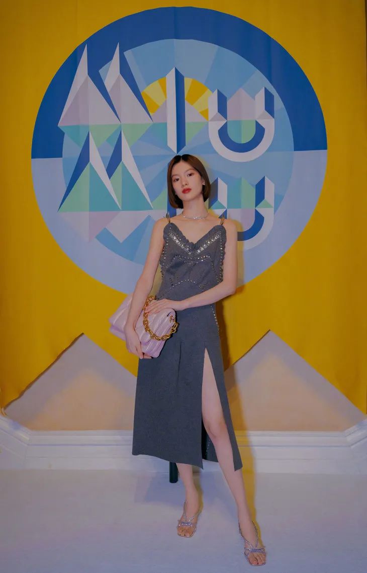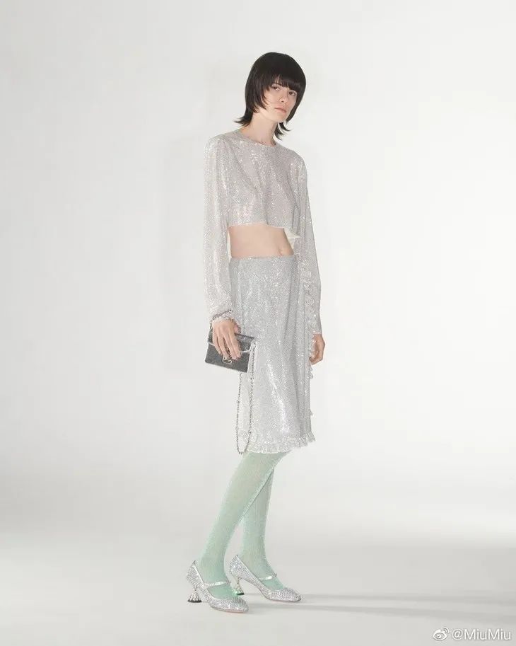 利落的剪裁在水鑽的襯托下愈發靈動,搭配亮晶晶的發箍、手包,Miu Miu女孩如此閃爍。