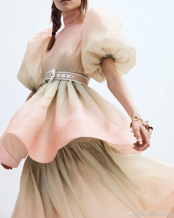 在色彩、款式上比較保守的話,清新的馬卡龍色系可以成為你的首選。沉浸於浪漫色彩詩意,泛動一片絢爛夢境,這是Zimmermann 2022春夏季節帶來的海灘暢想。